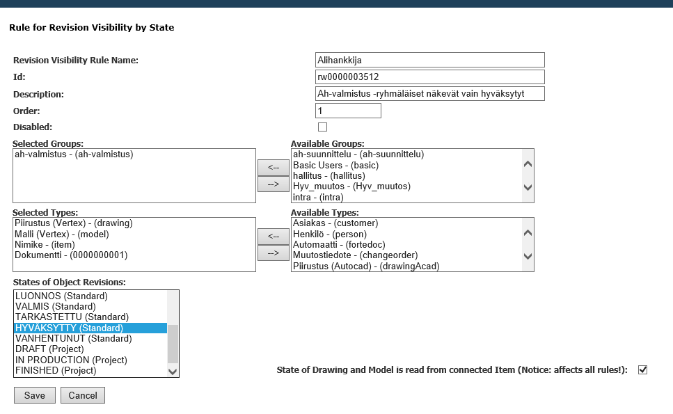 For example, a user in a subcontractor role can be assigned to a group that only sees the latest approved objects.