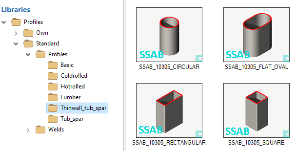 Select the profile from the libraryProfiles > Thinwall_tub_spar > SSAB_10305_SQUARE.