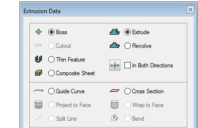 If you have sketched a shape that does not have open shape line ends, the program always suggests the Boss extrusion.