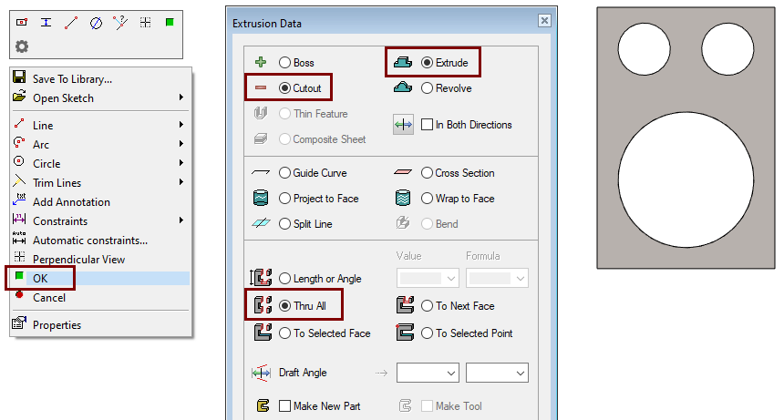 Select: Cutout and Extrude.