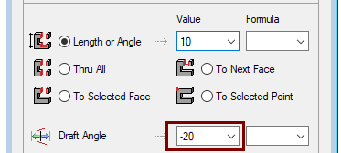 You can also enter a draft angle.