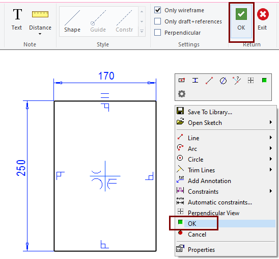 Click OK on either the ribbon bar or in the context-sensitive menu.