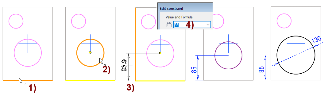 Accept the dimension constraint, press OK, in the figure 4).