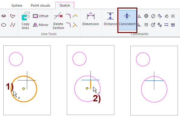 Sketching: Coincident constraint