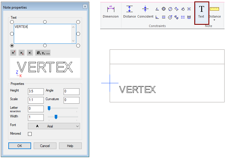 Add text, eg VERTEX