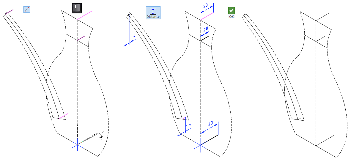 Skecth the symmetry axis with two line segments (style: Guide).