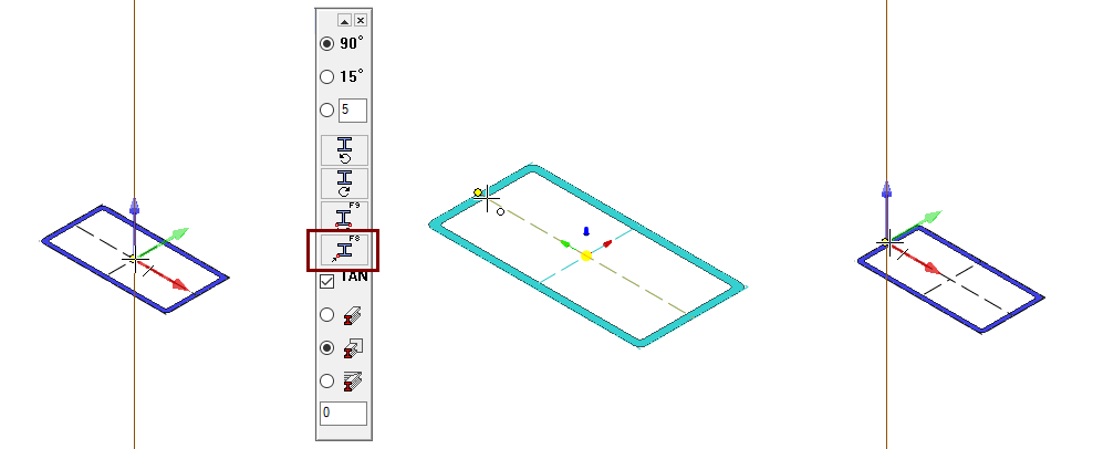 Sketching: Two-point rectangle, Offset line, two point line and dimensioning.