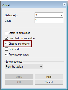 Choose line chains = If another line is connected to the end of the selected the program selects all lines.