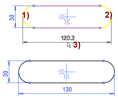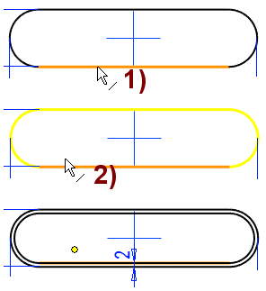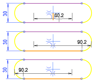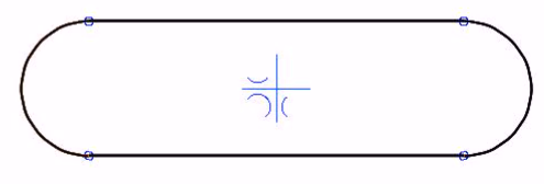 The Smart Line Chain should be used when sketching a shape with both segment and arc of a circle. Thesegments and arcs are connected tangentially or perpendicularly. The program also assists to draw the oval symmetrically to the origo.