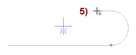 Move the cursor so that the program suggests drawing a tangential arc, and move the cursor up so that the program draws a guide line and suggests a perpendicular () direction, in Figure 4).