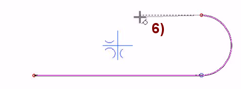 Move the cursor to the left until the program suggests a tangential line to the arc ( ), in Figure 6).