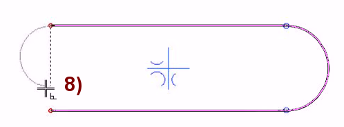 Move the cursor to the left until the program suggests a symmetrical drawing (), in Figure 7).