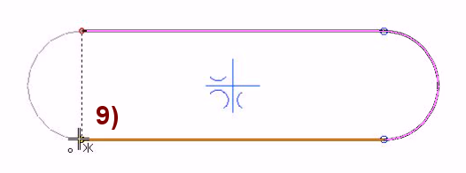 Move the cursor so that the program suggests drawing a tangential arc, and move the cursor down so that the program draws a guide line and suggests a drawing perpendicular to it. (), in Figure 8).