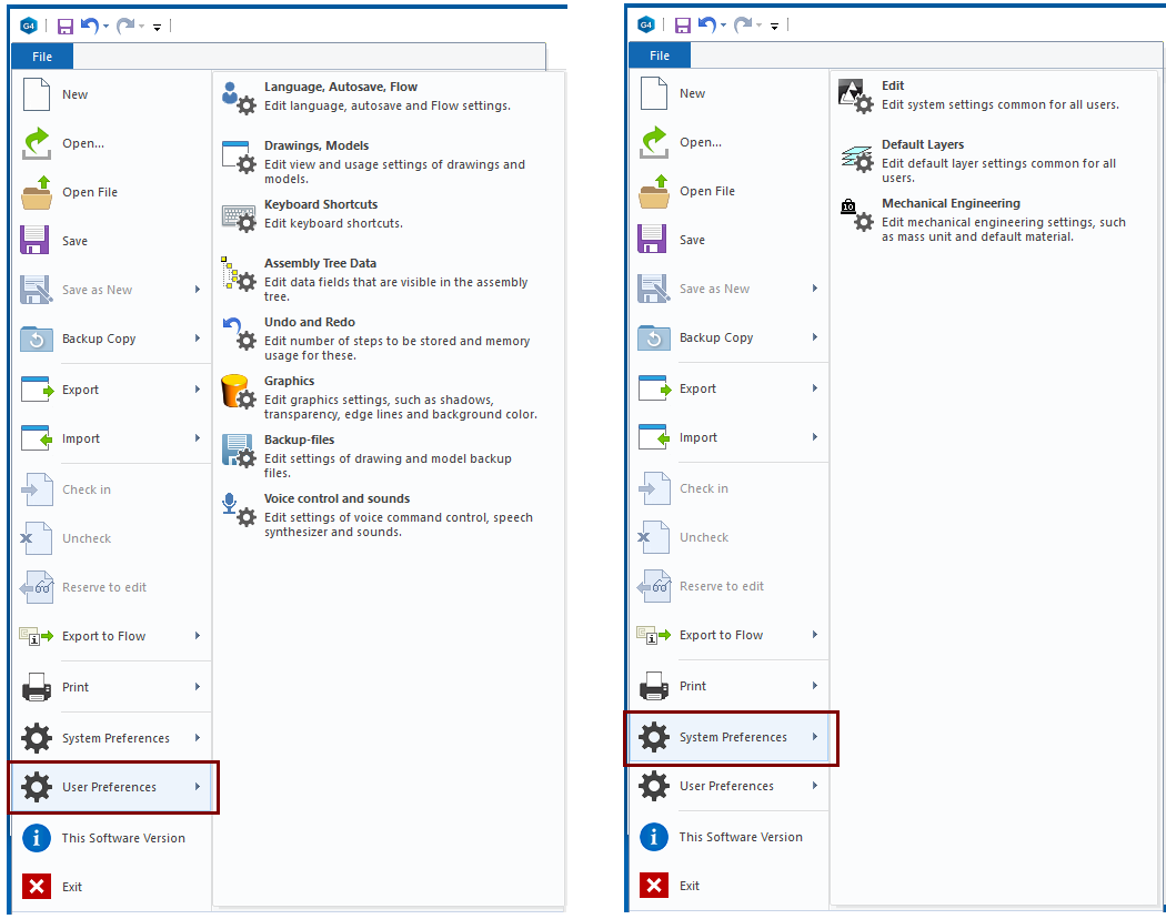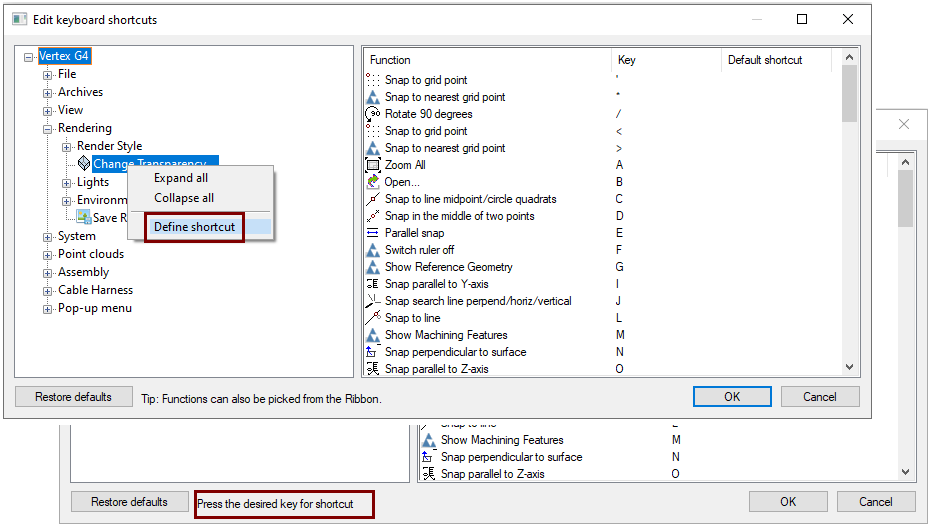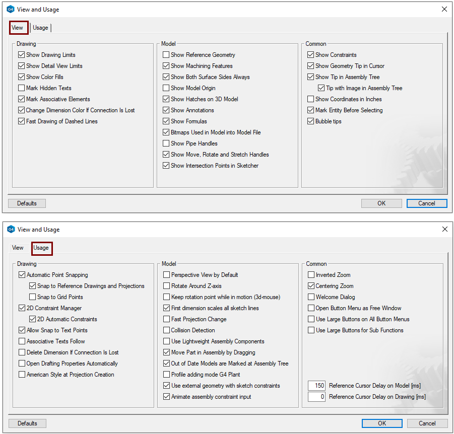 Some of these settings can be affected with keyboard shortcuts. For the some has an interface on the desktop of the model or drawing.