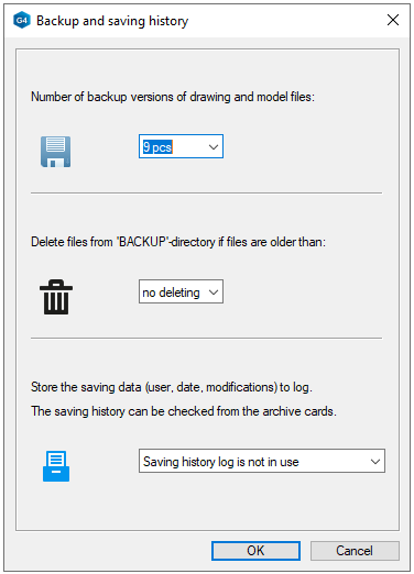 However, so that the maximum set number of backups is stored for each drawing or model.