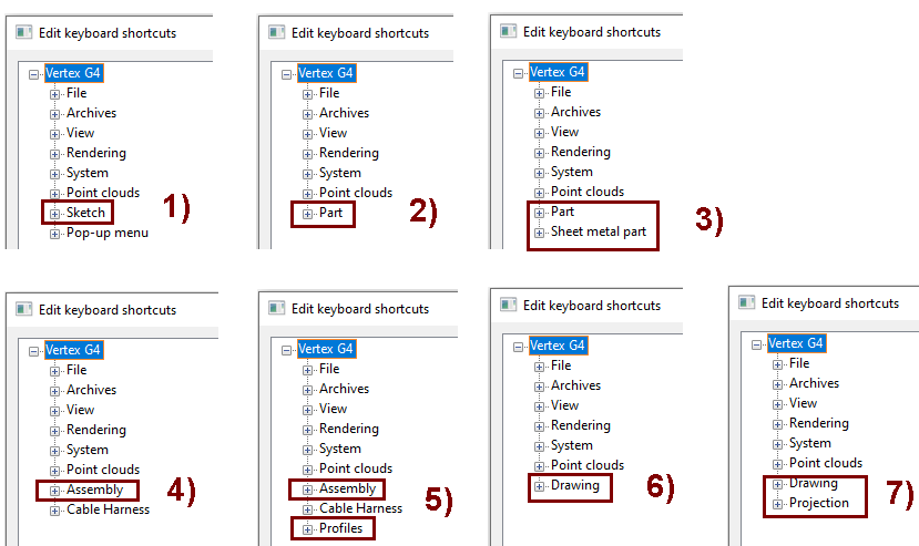 Oletuksena Vertex käyttää jo varsin paljon näppäimiä käynnistämään tai ohjamaan käynnissä olevia toimintoja, eli valtaosalla näppäimistön näppäimistä on jo jokin merkitys.