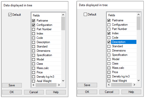 Note that if you want to affect the order of the data, first deselect all the selections and then select them in the order you want them to appear in the configuration tree.