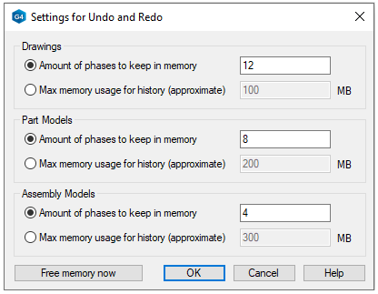 Vertex's Undo and Redo functionality is based on the fact that the model or drawing is stored in its entirety in the computer's main memory, which is limited in size.