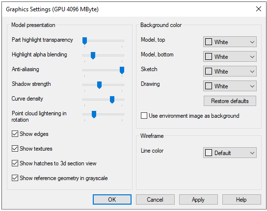 These settings mainly control the appearance of models on the screen (for example, whether or not to draw the outlines and textures of parts)