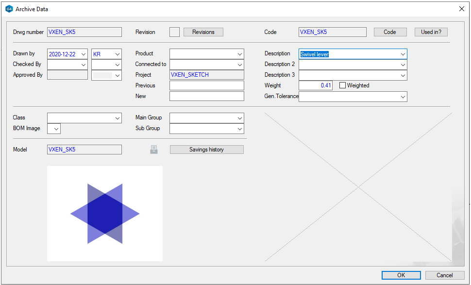 Vertex generates the requested projections and copies the model archive data to the drawing archive card.