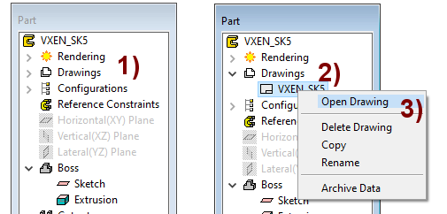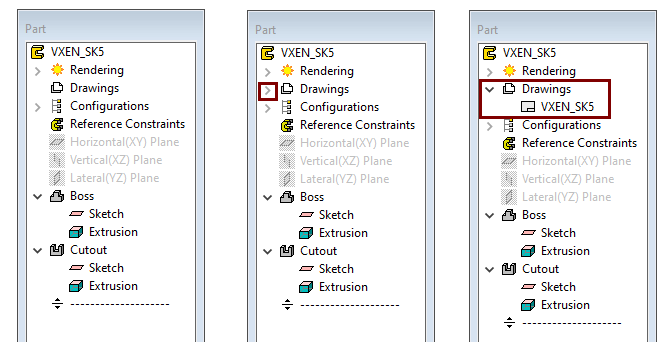 Saving the model after creating the drawing is absolutely important, otherwise it will not be marked in the model feature tree.