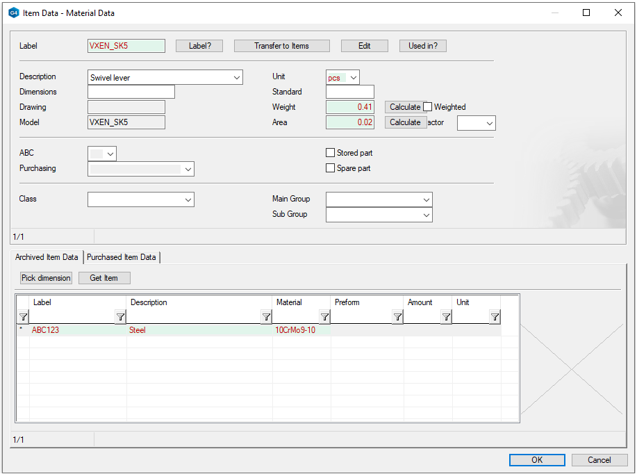 The Item Data of the raw materials, components and profiles is stored in the d_COMPONENTS database.