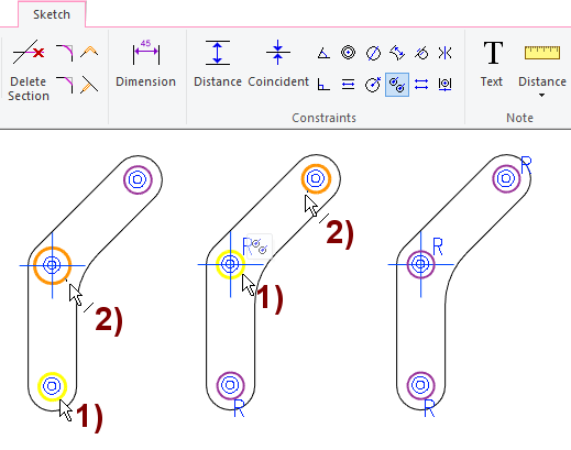 When you select the equal radius constraint and click any circle the equal radius symbol appears next to the cursor.
