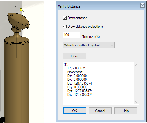 Examine the assembly model by measuring it with the Distance function