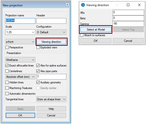 The Viewing direction dialog is opened.