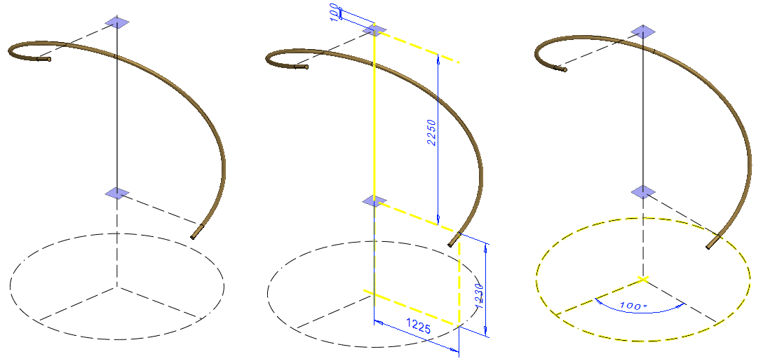 The angle shown at the bottom (Figure 100 and Model 101.25) determines the rotation of the stairs by 260 degrees.
