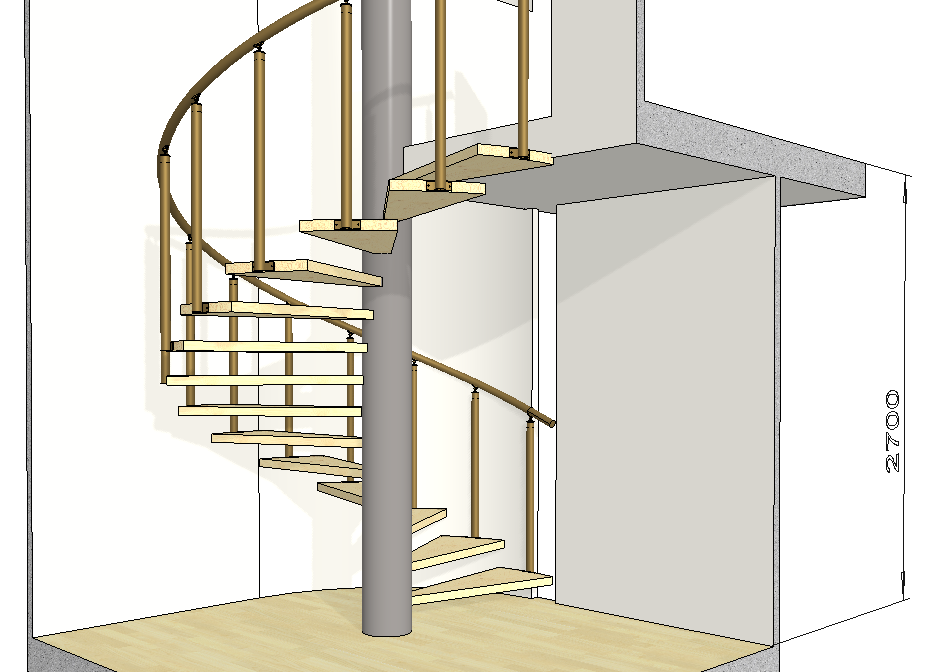 View the relative position of the spiral staircase steps