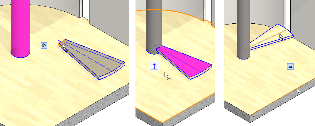 Click to the location (in the middle figure) of the point where the end of the step guide line is attached.