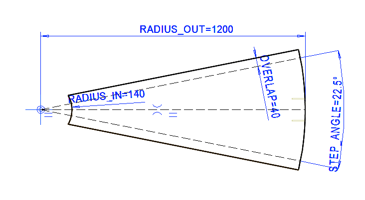 Enter an angle (initially 260 °), ie 3/4 of a full turn, roughly removing half of the step angle.