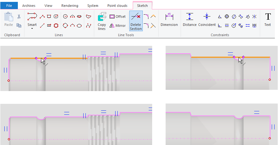 When you remove a piece from the line segment (as you do in this exercise), the remaining two segments get a constraint of Coincident with each other, i.e. they both lie on the same space line.