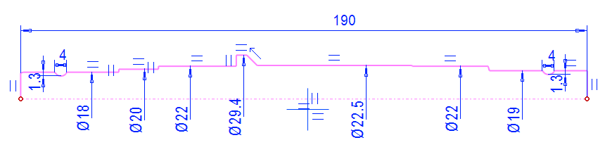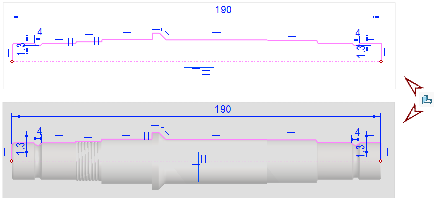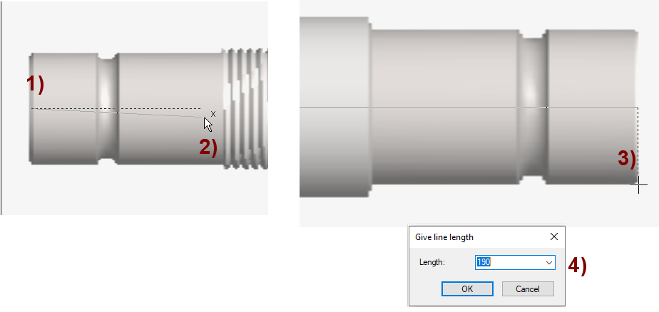 If the cursor is on the other side of the rotation axis, the program suggests a diameter, in the figure 4).