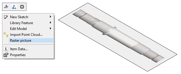 The raster image only appears in the part model and sketch if the auxiliary geometry is visible.