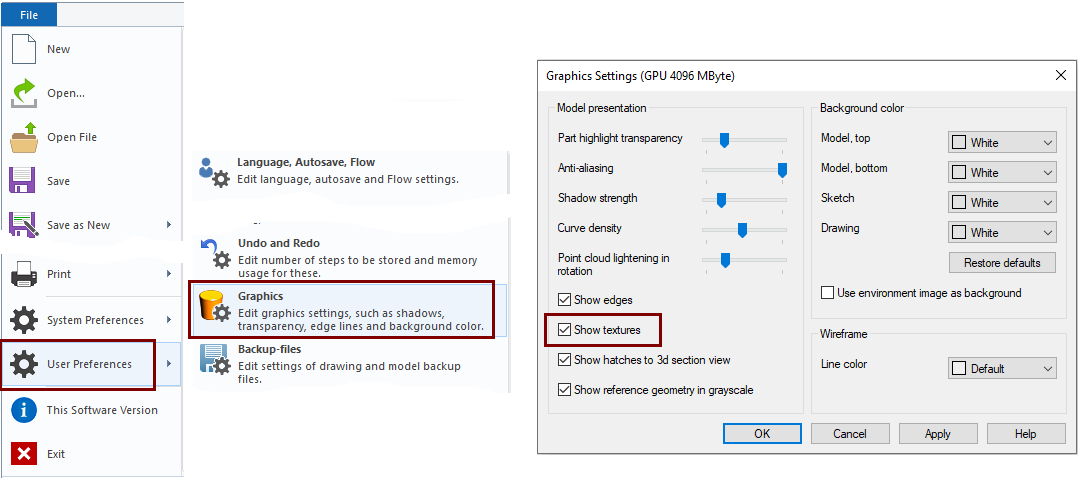 Adjust the visibility of the auxiliary geometry with the G key or the toolbar function: Show reference geometry.