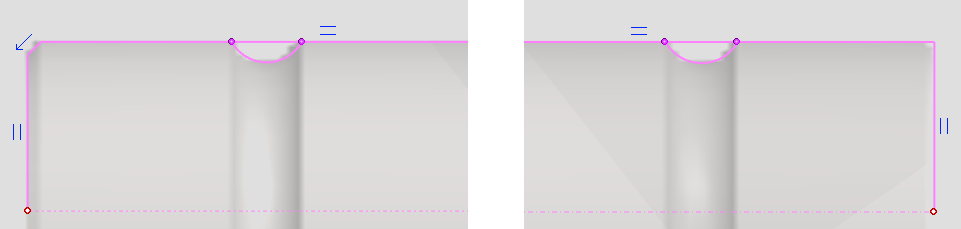 Click the segment and arc at its bottom and enter the dimension 1.3.