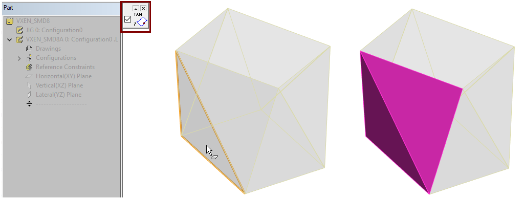 - Select TAN in the upper left corner of the desktop, ie the selection of the tangential surface chain.