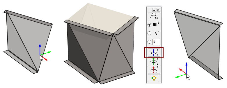 - Before positioning, turn the part 90 ° twice around the blue axis.