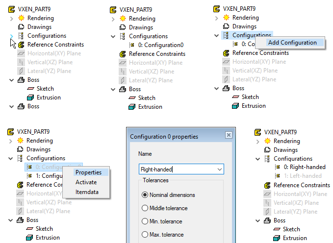 Add and naming a new configuration of part.