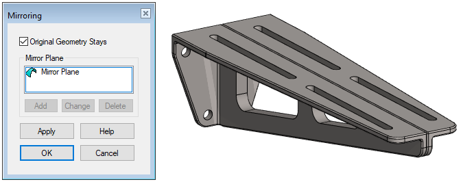 This function can be used with symmetrical part when you want to copy a feature (Boss or Cutout) by mirroring it on the other side of the part.