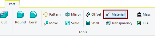 Ribbon Function (Tools) Material opens the Material dialog, where you can write manually or retrieve material information for the raw material.