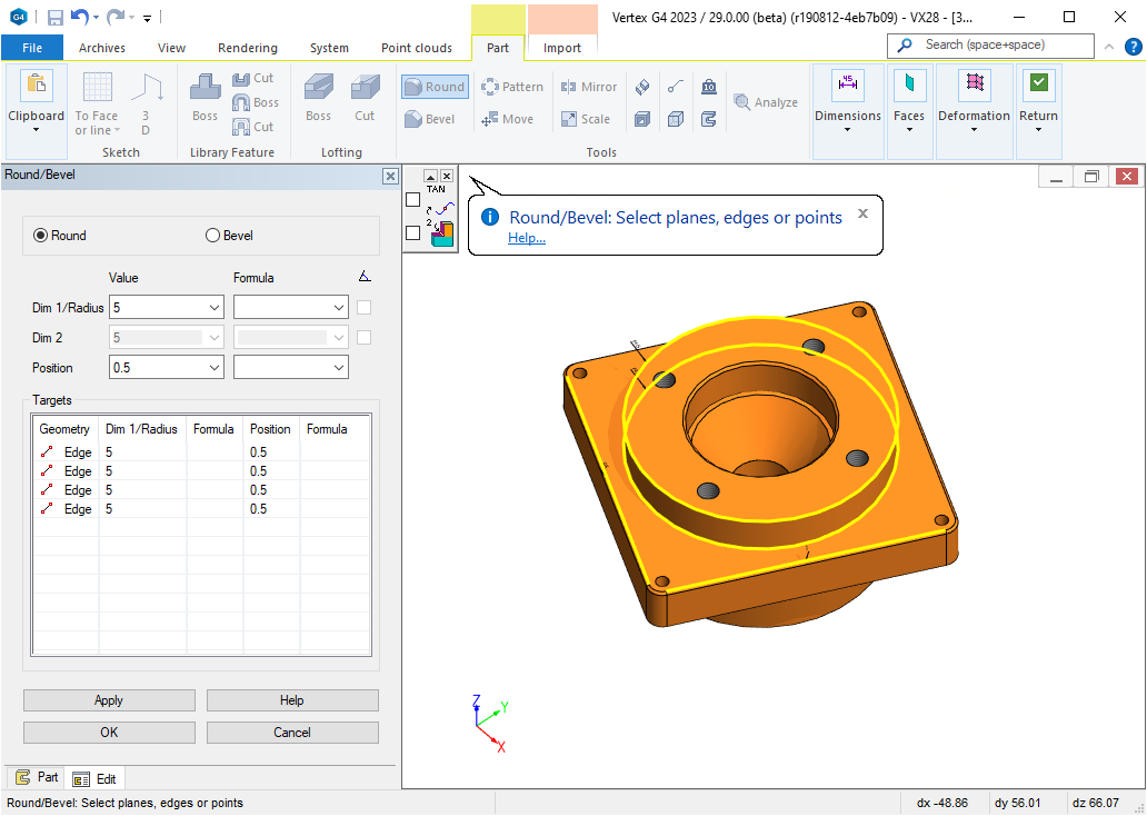 Using the blending dialog is now easier that before. Now you can edit the values direclty in the dialog, and remove extra rounding easily. You can also add multiradius blends easily.