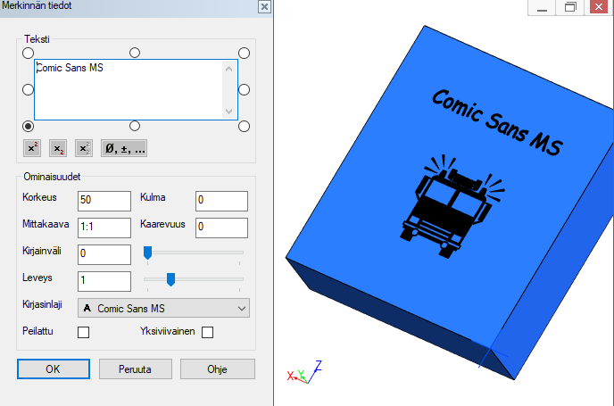 Old single line fonts like NORMAL and NORMAL_OLD are now obsolete from 3D -models. With each Vertex installation there is a now a new font Normal SingleLine, which is used to replace all NORMAL -fonts.