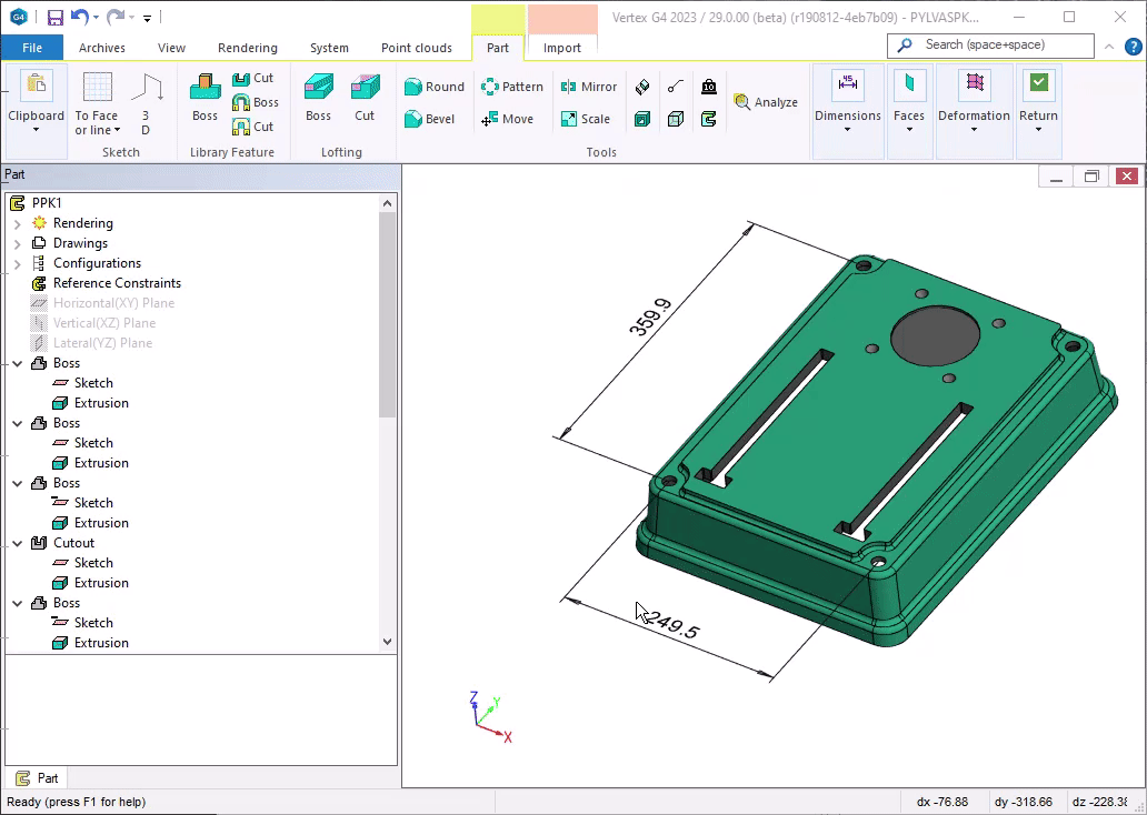 Contextg sensitive menu now contains a function "select points of a surface". Especially wit imported parts you may need to do transformations for a set of points, or you want to create roundings for all points around a surface.