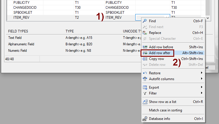 - The first book tells you the type (M = Alphanumeric field, T = Text field, N = Numeric field).