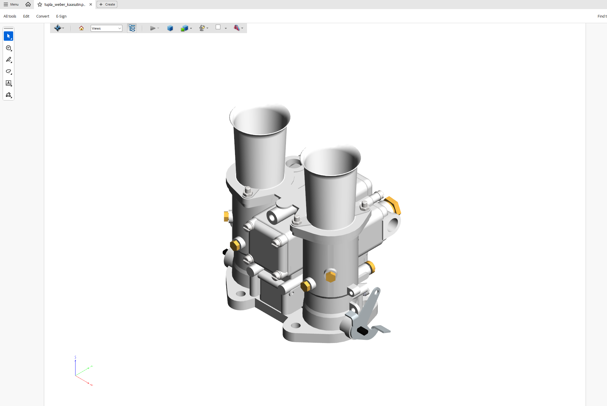 Ensimmäisessä vaiheessa on olemassa 3d pdf-tiedosto, jonka haluamme kääntää Vertex G4:n ymmärtämään muotoon