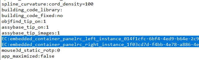 4 Delete two rows beginning with "EC:embedded_container...", the rows are near the end of the file. See image above.
