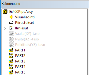 Kokoonpanopuussa aliosat näkyvät PART tai .imported -alkuisina.